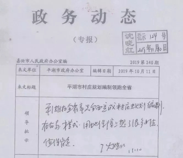 4、本地:我市村庄规划编制工作领跑全省获嘉兴市领导批示