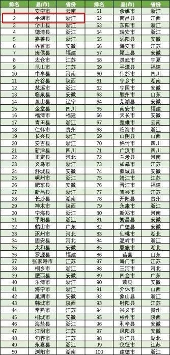 又有好消息传来,中国社科院版中国百强县发布!2019年全国县域经济竞争力100强,平湖位列第43位!2019年全国投资潜力100强县(市),平湖位列第2!