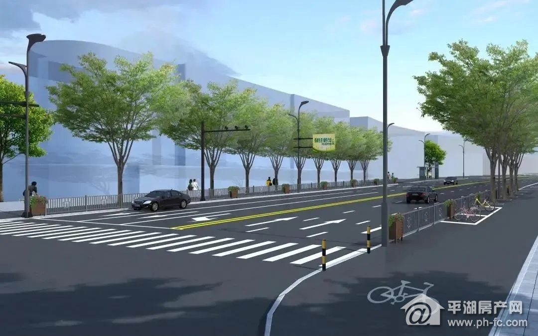 将原来的双向四车道改成双向六车道,非机动车道和人行道共板设计,新建多杆合一路灯,可与标识牌、电子警察、5G设备共杆。
