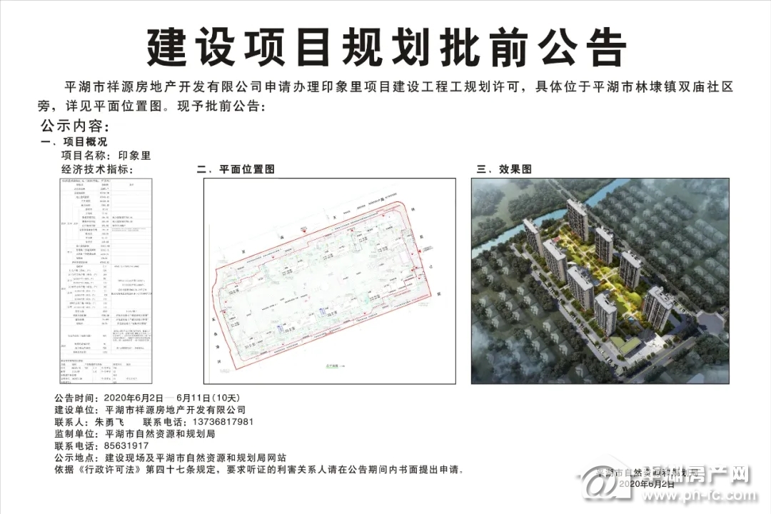 该批前公示为位于平湖市林埭镇双庙社区旁的印象里项目建设工程。该地块于2020年4月17日以楼面价2609元/m²,总价17730万元,由浙江佳源房地产集团有限公司&浙江紫城房地产开发有限公司竞得。该项目规划为8栋高层,全社区预计规划户数为728户。