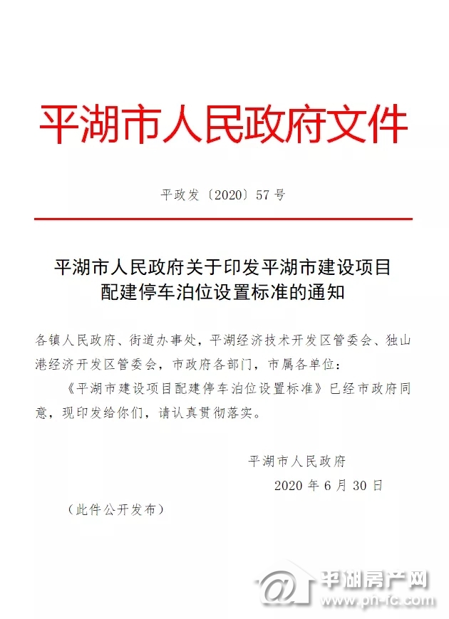 本标准自2020年7月30日起施行。原《平湖市建设项目配建停车泊位设置标准(修订)》(平政发〔2015〕181号)同时废止。