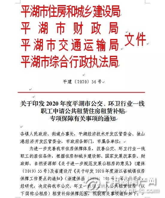 为做好公交、环卫职工专项住房保障工作,市建设局、交通运输局、综合执法局建立了完善的工作机制,明确了各部门职责和分工。交通运输局、综合执法局指定专人配合做好行业一线职工申请、资格初审、年度资格复核等工作。建设局负责申请人员住房情况核查,对申请材料进行复审,并在“中国平湖”政务网和建设局官方微信号上公示,向符合条件的公交、环卫职工发放公租房租赁补贴。