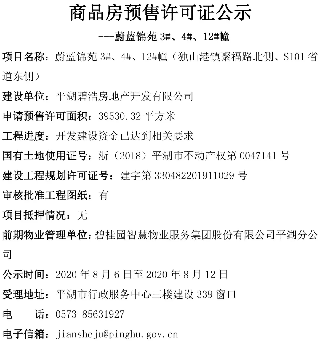 碧桂园·蔚蓝锦苑,项目位于独山港镇聚福路北侧,S101省道东侧。这是该项目第三次的预售许可证公示,本次开盘楼栋为1#,2#,7#,预售均价13000元/㎡左右,预计将于8月中下旬开盘。