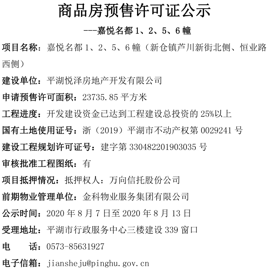嘉悦名都,项目位于平湖市新仓镇金沙西路与建新路交口。这是该项目第二批次的预售许可证公示,项目已全部公示,本次开盘楼栋为1#,2#,5#,6#,预售均价13000元/㎡左右,主力产品为小面积刚需户型,面积段为70平的精致两房和90平的舒适三房,在设计风格上采用了经典大都会风格。预计将于8月中下旬开盘。