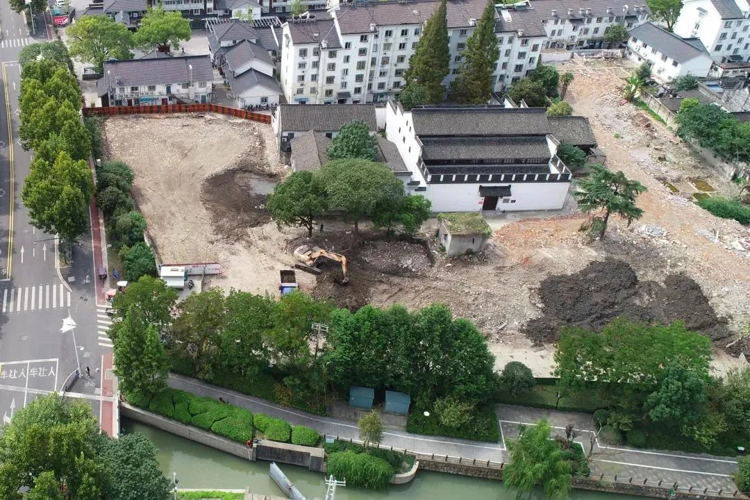 在水洞埭北侧临时停车场工程现场,可以看到,房屋已经拆除清运,地面已经平整,现场挖机正在加紧作业,而原本地块上的树木予以了保留,这也为城市下一步开发建设保留了生态底色。
