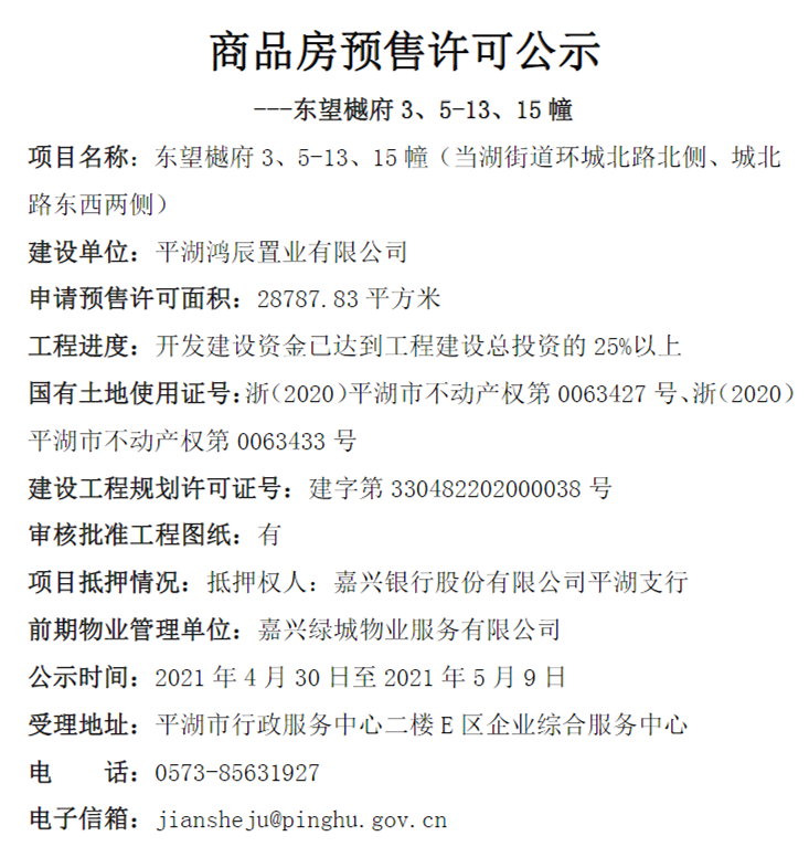 鸿翔·东望樾府最后一批次预售3、5-13、15幢,约133套房源。