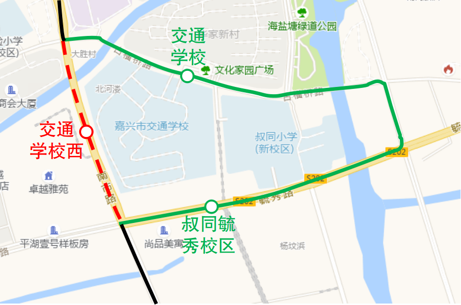 原南市路(古横桥路—毓秀路段)线路走向优化调整为南市路—古横桥路—海盐塘路—毓秀路—南市路,取消停靠交通学校西站点,新增停靠交通学校、叔同毓秀校区等2个站点。