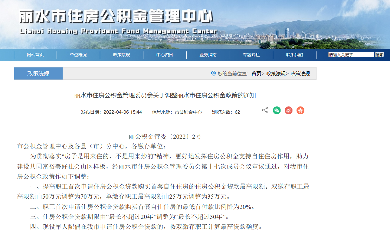 4月6日,丽水市住房公积金管理中心发布调整住房公积金政策的通知。