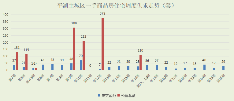 据市场调研数据统计,第26周主城区一手房共计成交约29套,较前一周增加了12套。
