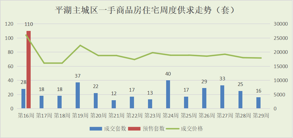 据市场调研数据统计,第29周主城区一手房共计成交约16套,较前一周减少了9套。