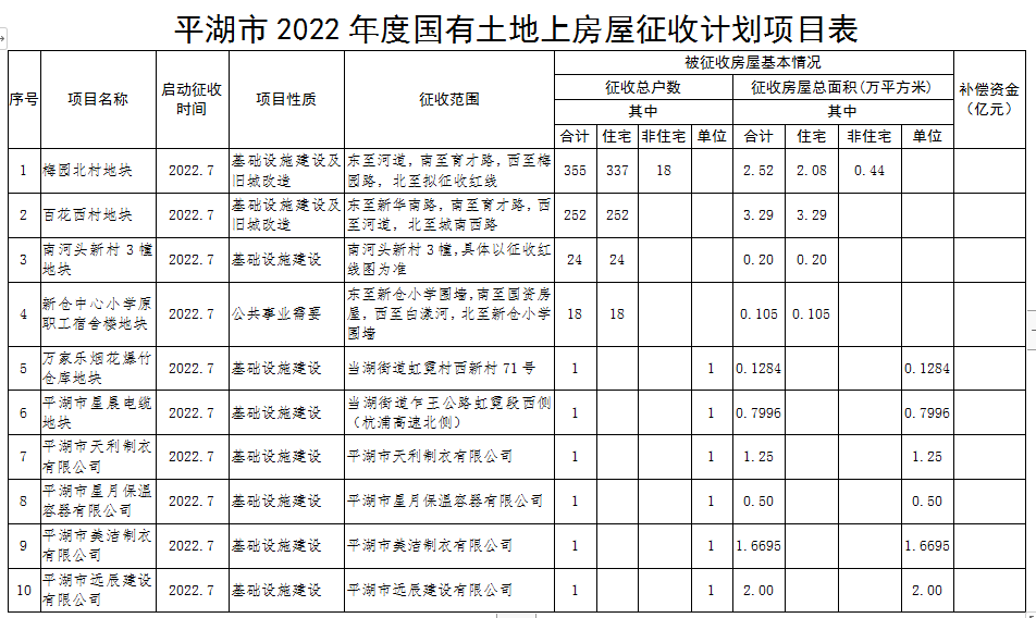7月20日,《平湖市人民政府关于公布2022年度国有土地上房屋征收计划及征收范围的通知》公布,共有10个地块列入征收计划,让我们看看各地块具体征收范围。