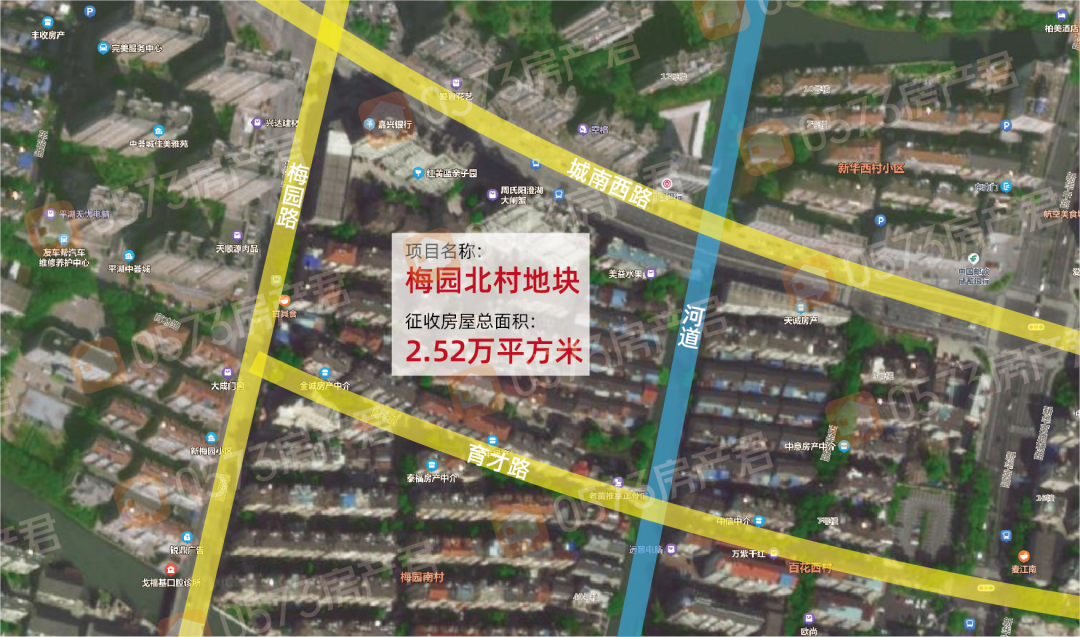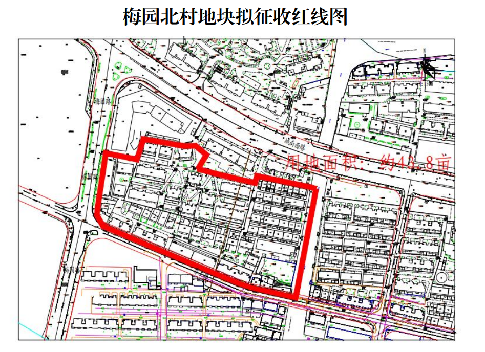梅园北村位于城南西路和梅园路的交汇处,征收范围为东至河道、南至育才路,西至梅园路,北至拟征收红线。