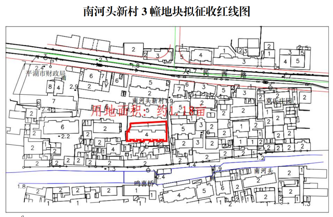 排名第三的是南河头新村3幢地块,征收24户,征收房屋面积2000方。