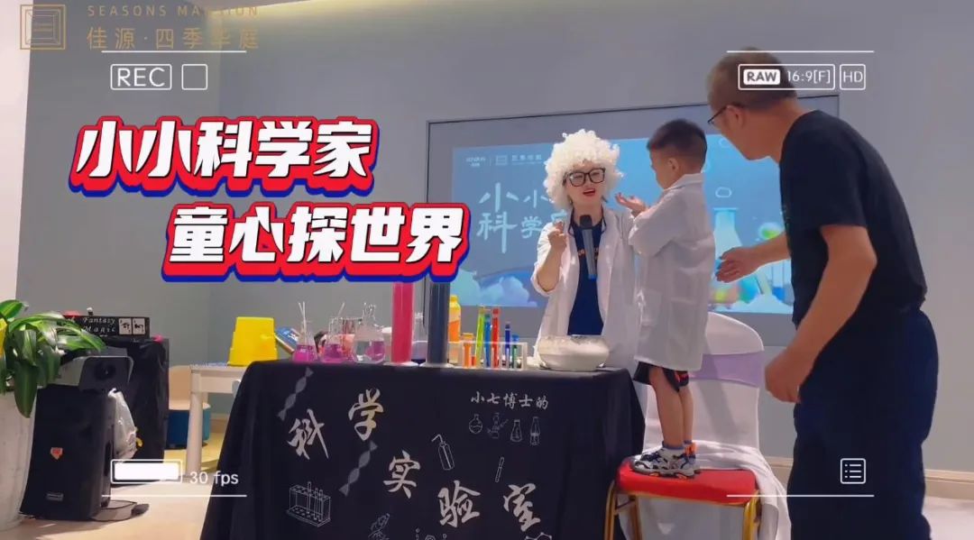 7月23日下午,在四季华庭售楼中心一场小小科学家,童心探世界的活动热闹非凡的举行着。干冰变色和味道、冒烟零食、空气大炮、火山爆发和魔术课堂,给“小科学”们带来一场精彩绝伦的科学实验室,大开眼界。