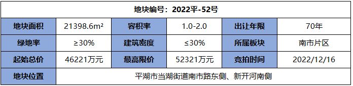 11月25日,平湖市自然资源和规划局上架了一宗宅地(2022平-52号)。从区位图可以看出,该宗宅地其实就是前两天流拍的2022平-47号。