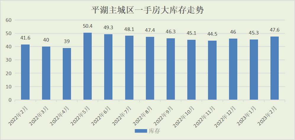 截止到2月19日,平湖主城区一手房总库存量约为44.4万方,较前一周减少了0.3万方,但上周有2023平-3号地块的土拍,为库存增加了约3.2万方,所以呈现上涨趋势。