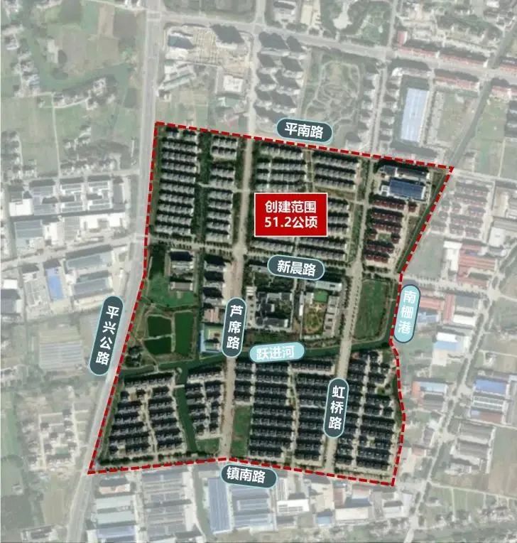 文汇泖水·颐聚虹桥——新埭镇虹桥景苑社区未来社区,被列入浙江省第六批普惠型未来社区创建名单,该项目规划单元51.2公顷,东至南栅港,西至平兴公路,北接平南路,南临镇南路,主要涵盖芦席南区和芦席嘉园两个小区,常住人口2700余人。
