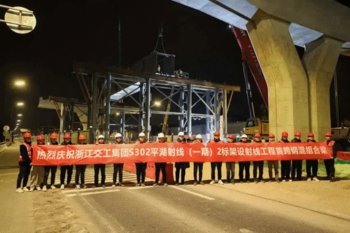 近日,嘉兴市域快速路平湖射线工程(一期)首跨钢混组合梁启动架设,标志着该工程进入上部结构施工阶段。